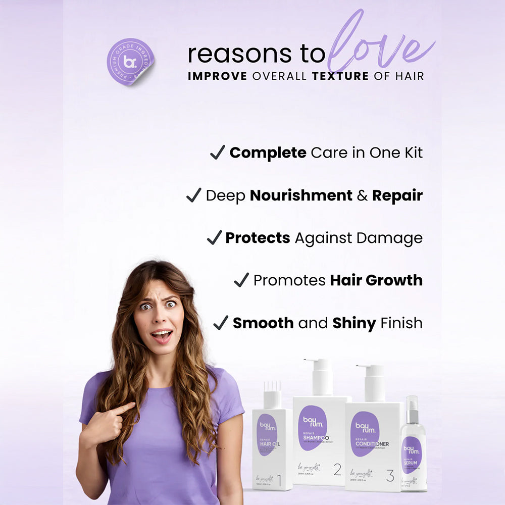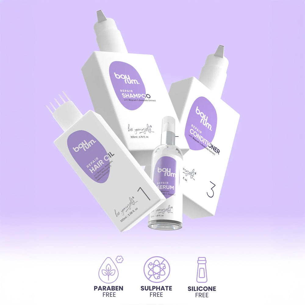 Bayrum Hair Care Set is a complete 4-step combo kit designed to nourish and repair dry, frizzy, and damaged hair. This set includes a hair oil, shampoo, conditioner, and serum, all enriched with avocado and other nourishing ingredients to hydrate and restore hair from root to tip. Perfect for women seeking a hair repair kit, this collection strengthens, repairs, and enhances shine, promoting healthier, stronger hair. Whether you have thick or thin hair, curly or straight, this kit is designed to reduce frizz, boost shine, and support hair growth. Pamper your hair with Bayrum’s avocado-based hair care set for ultimate repair and shine.